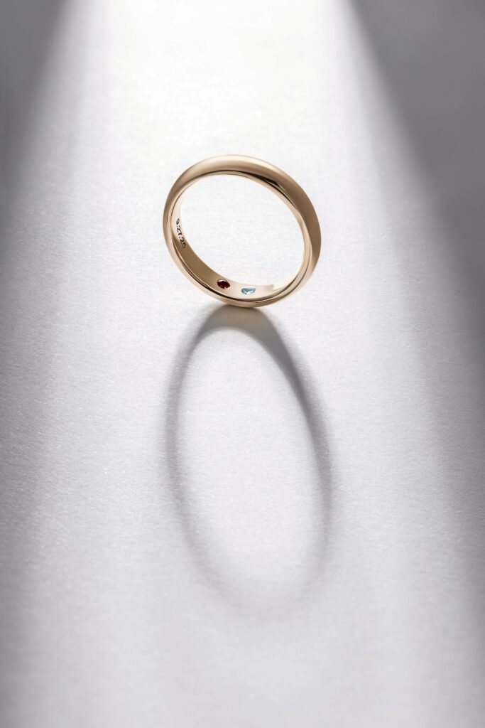 The wedding ring—a minimalist 18k gold band—carries profound symbolism. Their wedding date is engraved alongside, ensuring the ring remains a timeless marker of their union.